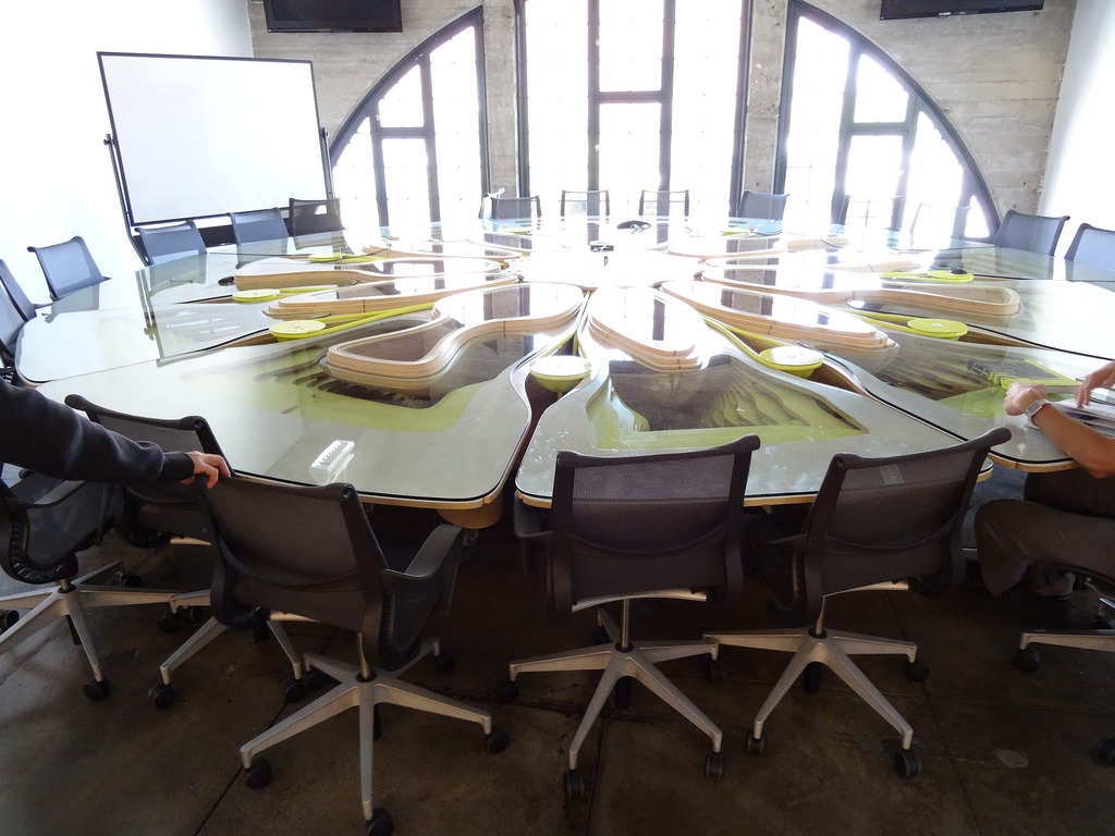 - 校舎はうなぎの寝床のように細長く、雰囲気はIIDとか東京のリノベ系多目的スペースにかなり近い。ただ大部分のエリアが多目的に使えるようになっており、あるときは大規模展示、あるときはレクチャールームへとトランスフォームできる。いわゆるコロシアム型のレクチャールームはなし。